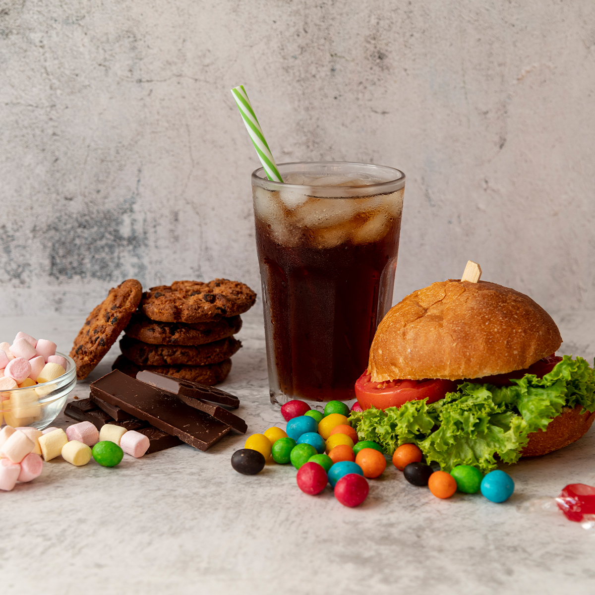 สำหรับเรื่อง น้ำตาลและของหวาน ที่ว่ามะเร็งชอบน้ำตาลและต้องงดทุกชนิดนั้น ความจริงคือเซลล์มะเร็งใช้กลูโคส (น้ำตาล) ในการเติบโตสูงกว่าเซลล์ปกติ แต่เซลล์ปกติทุกเซลล์ก็ต้องการกลูโคส ในการทำงานเช่นกัน การงดน้ำตาลจนหมดสิ้นจะทำให้ผู้ป่วยอ่อนเพลีย ขาดพลังงาน สิ่งที่ควรทำคือ จำกัดน้ำตาลเชิงเดี่ยว ที่ไม่ให้คุณค่าทางอาหาร เช่น น้ำหวาน น้ำอัดลม และขนมหวานจัด แต่ยังคงทาน คาร์โบไฮเดรตเชิงซ้อน ที่มีใยอาหาร เช่น ข้าวกล้อง ธัญพืช และผลไม้ที่ไม่หวานจัดเพื่อรักษาระดับพลังงานของร่างกาย